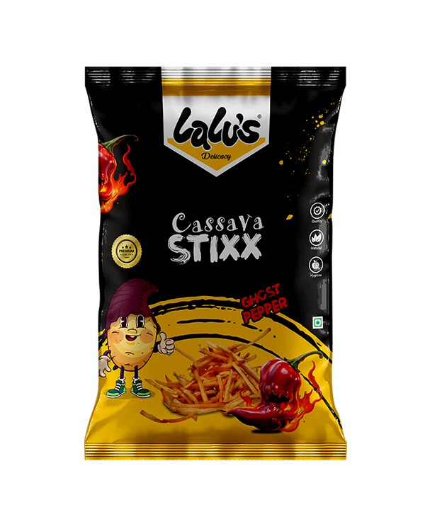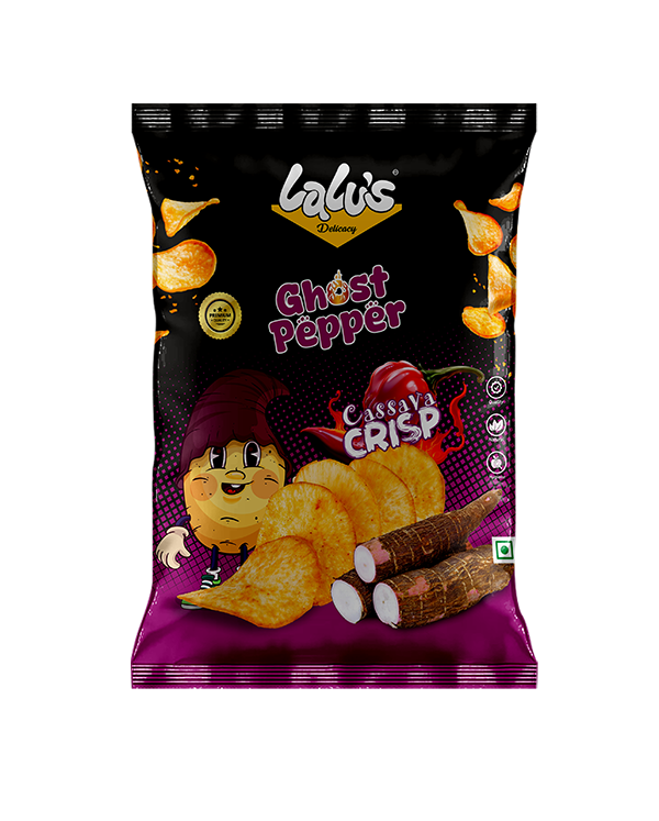 Crunchy cassava crisps ignited with the intense, fiery kick of ghost pepper for a bold and unforgettable snacking adventure.