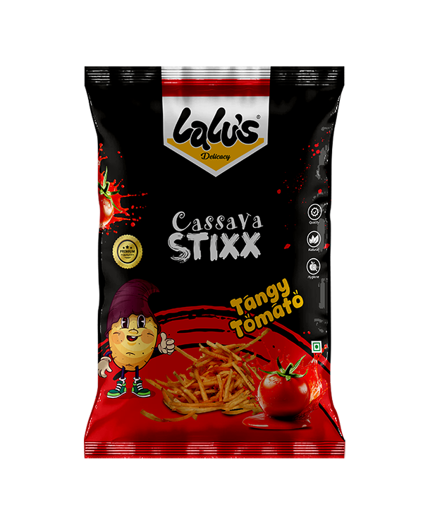 Crunchy cassava sticks dusted with a zesty, tangy tomato seasoning for a uniquely satisfying and flavorful snack experience.